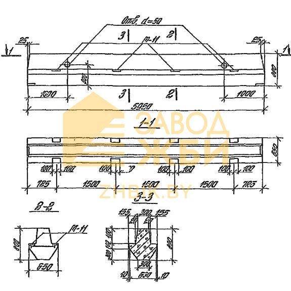 Для того чтобы избежать разрушений ригеля, в него закладывают стальную арматуру, поверхность которой отлично сцепляясь с бетоном, образует монолитное изделие. Армирование Б 1-2 происходит при помощи сварных каркасов сеток. В изделии предусмотрены строповочные петли, которые служат для удобства захвата краном при разгрузке, перемещении и монтаже. Они выполняются из стержневой горячекатаной гладкой стали класса А-I.