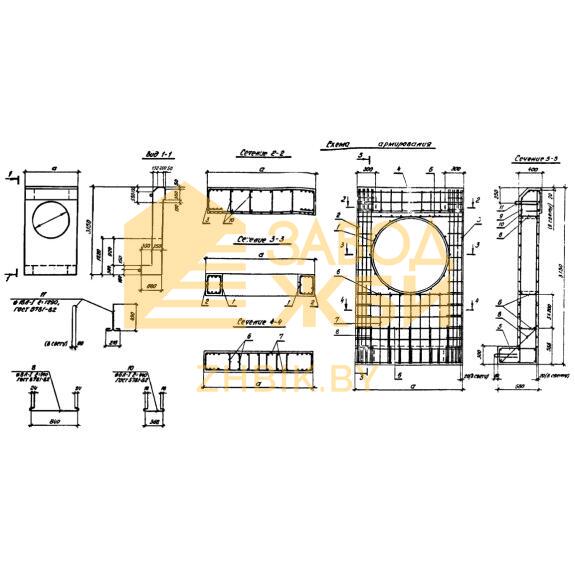 Элемент представляет собой плоскую стенку с отверстием установленного диаметра для подсоединения одноразмерного круглого трубопровода и двумя конструктивными выступами-козырьками для закрепления плиты в проектное положение. Откосные правое и левое крылья крепят к портальной стенке при помощи закладных деталей-шпилек. Бетонная поверхность выполняется гладкой, чтобы исключить возможное трение потоку воды, несущей взвесь, песок и прочие компоненты.