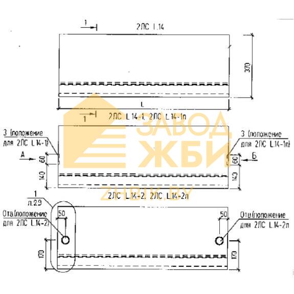 1. 2ЛС - тип элемента лестницы - ступень основная с опиранием на стены;