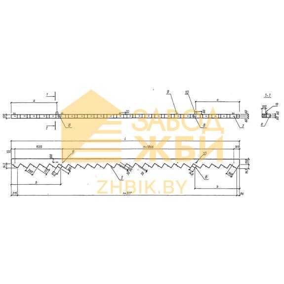 Косоуры ЛБ 4– унифицированные железобетонные изделия, имеющие вид прямоугольника с рядом выступающих частей. По внешнему виду конструкция напоминает боковую поверхность лестничного марша. Элементы запроектированы толщиной 120 мм.