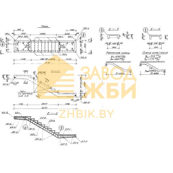 Лестничные марши СЛМ 52-12-15 – это сложные бетонные армированные изделия, имеющие конструкцию Z-образной формы с двумя несущими продольными ребрами. Двенадцать ступенек определенной высоты и ширины расположены на пологой железобетонной наклонной их части, соединяющей две горизонтальные разновысокие поверхности, которые традиционно используются в качестве лестничных площадок. Лестничные конструкции устанавливаются на межэтажные несущие перекрытия. Для простоты стыковки с ними на железобетонных маршевых элементах предусмотрены специальные полуплощадки. Надежность этого соединения осуществляется за счет сварки выпусков арматуры и закладных элементов. Ступеньки расположены под определенным углом наклона, обеспечивающим комфортные условия подъема либо опускания по лестнице между этажами. Для простоты монтажа и выполнения погрузочных работ на маршевых элементах предусмотрены четыре строповочные стальные петли. В проектном альбоме Серии ИИС 04-7 приведены различные типовые конструкции лестничных маршей с основными монтажными размерами.
