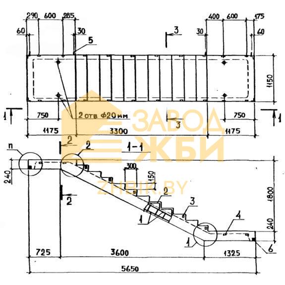 В маркировке могут быть указаны дополнительные цифровые индексы: «1» – удлиненная полуплощадка верхняя; «2» – удлиненная полуплощадка нижняя; «3» – нижняя полуплощадка отсутствует. Маркировочные надписи наносят на боковую поверхность маршей черной несмываемой краской. Необходимо указать дату выпуска, номер партии, наименование завода, массу изделия и штамп ОТК.