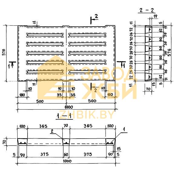 Решетки перекрытий каналов 4РП 100-58 – изделия прямоугольной формы с небольшими выступами по бокам, предназначенными для опирания на лотковые элементы или балки (в зависимости от условий типового проекта). Характерной отличительной особенностью конструкций является наличие сквозных прорезей на поверхности элемента, необходимых для просачивания назема.