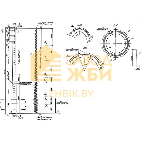 Стойки для опор контактной сети железных дорог С 136,6-3 м – высокопрочные полые железобетонные изделия конической формы с круглым поперечным сечением. В теле элемента предусмотрено несколько отверстий различного диаметра (35 и 24 мм), предназначенных для вентиляции.