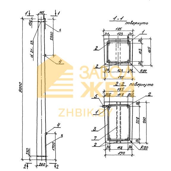 Стойки железобетонные для опор ЛЭП СВ 90-3,2 АтVI маркируют согласно действующему Стандарту – ТУ 102-465-88 указывают: