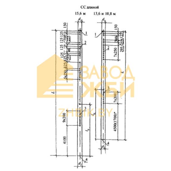 Стойки СС 156,7-8 – ЖБИ, используемые в стройке контактных ж/д дорог. В сечении элементы представляют собой коническое кольцо заданного диаметра. По длине стержня имеется ряд вентиляционных отверстий. Ближе к ним в нижней части имеется диагностический репер, используемый для подключения проверочной аппаратуры. На поверхности стоек нанесены специальные риски. С их помощью определяют центр тяжести и положение в пространстве. Для соединения с консолями и кронштейнами имеются закладные металлические звенья; для закрепления к стакану фундамента – анкерные болты.