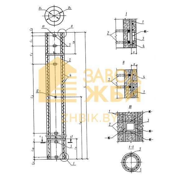 Стойки СЦ 20,3-1,0 н – железобетонные элементы в плане цилиндрического сечения. Имеют подпятники и две опорные диафрагмы. Стержень обладает высокой жесткостью, прочностью и трещиностойкостью, поэтому допускается эксплуатировать в условиях значительных разрушающих нагрузок, в том числе вырывающих и сдавливающих усилиях, а также изгибающих моментах. Для крепления металлических конструкций опор стойки имеют закладные детали.
