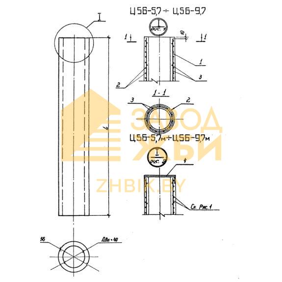 Согласно Серии 3.407.1-139 цилиндрические оболочки имеют маркировочное обозначение. Марки отражают основные конструктивные особенности изделий и позволяют легко ориентироваться в номенклатурном ряду железобетонной продукции. Рассмотрим более детально на примере как расшифровывается маркировка Ц 56-6,2 м-1 (3.407.1-139):