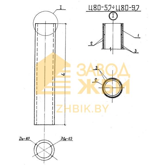 Согласно Серии 3.407.1-139 цилиндрические оболочки имеют маркировочное обозначение. Марки отражают основные конструктивные особенности изделий и позволяют легко ориентироваться в номенклатурном ряду железобетонной продукции. Рассмотрим более детально на примере как расшифровывается маркировка Ц 80-7,7-2 (3.407.1-139):