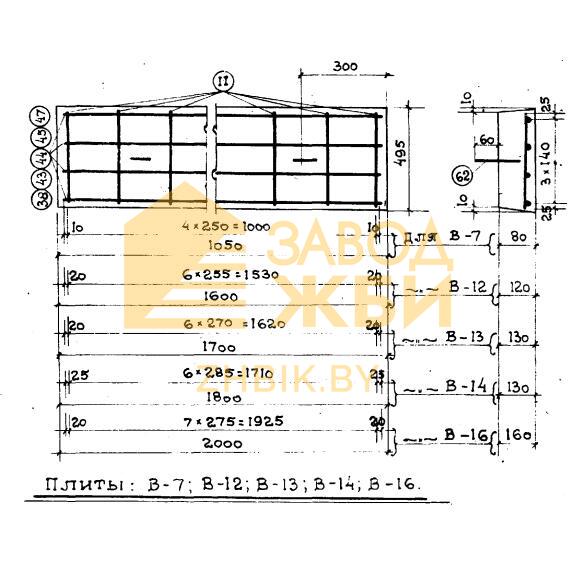 Плиты перекрытия В 16 – являются обязательными составляющими сборных конструкций непроходных каналов используемых для прокладки трубопроводов теплосетей с засыпной либо подвесной термоизоляцией. Изготавливают их на специализированных предприятиях, в виде ж/б плоских панелей относительно небольших размеров с сечением по форме напоминающей прямоугольник. На продольных гранях имеются технологические скосы. Бетонные армированные сталью плиты перекрытия применяются для накрытия лотков. Удобство выполнения перемещения и монтажа этих ж/б изделий обеспечивается за счет закладывания в армирующие конструкции двух стальных строповочных петель. При необходимости Серия ТС 01-01 предоставляет возможность посмотреть чертежи и схемы сборки усиливающих сеток универсальных плит.