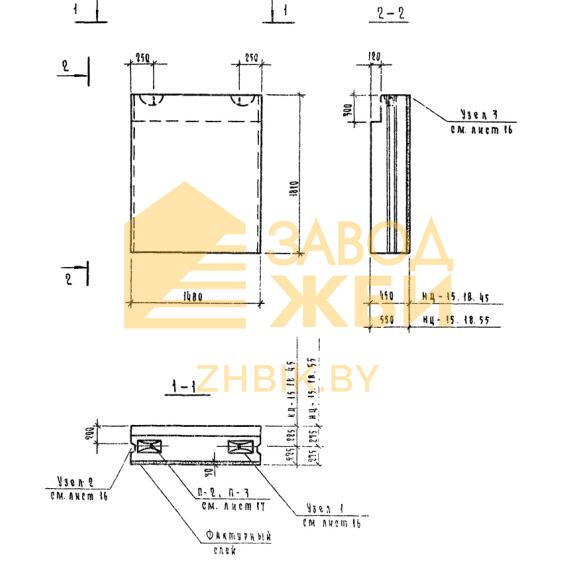 Условно обозначаются железобетонные изделия марками, в которых отображаются основные характеристики и отличительные особенности изделия. Марки состоят из буквенных и цифровых кодов, разделяемые дефисом. Маркировка блока НЦ 15-18-55 расшифровывается следующим образом: