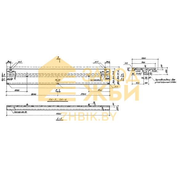 Плиты карнизные ПК 4– унифицированные железобетонные изделия прямоугольной формы. В поперечном сечении изделие по форме напоминает букву «Т». Одна из сторон элемента имеет продольное ребро (консоль карниза), противоположная сторона служит для закрепления карниза к плитам покрытия. Ряд конструкций запроектирован «Г» - образной формы поперечного сечения. Все изделия по Серии СТ 02-12/61 имеют одинаковую длину, равную 5980 мм.