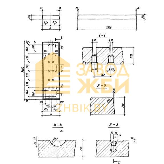 Плиты ПФ 35-15 (3.407.1-148) унифицированные железобетонные изделия, имеющие прямоугольную форму. Торцевые грани по всему периметру конструкции имеют небольшой скос, придающий элементу в поперечном сечении вид трапеции. В центральной части конструкции вдоль всей длины располагаются отверстия, предназначенные для пропуска анкерных креплений для фиксации будущей подстанции.
