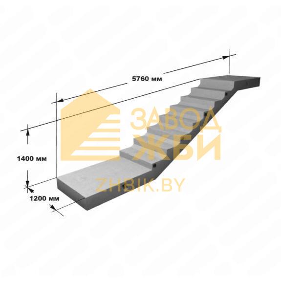 Лестничные площадки ЛМР 58-12-14-5 т-1 – унифицированные изделия, имеющие вид монолитной многоступенчатой плиты. Однокосоурная конструкция включает в себя два поперечных ребра, необходимых для опиранияна полки ригелей и диафрагмы жесткости. Допустимо изготовление с углублением ступеней на 20 мм для оборудования фактурного слоя. Изделия запроектированы под нагрузку 480 кг/м2.