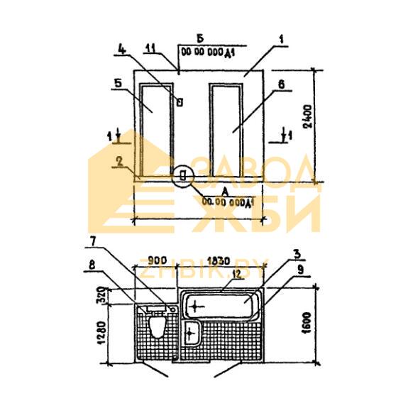 Железобетонные помещения для уборных и ванных комнат изготавливают в заводских условиях, на основании чертежей и пометок из Серии 1.188-5. Объемный блок изготавливается из тяжелого цементного бетона марки М200, так же регламентом изготовления допускается применение для производства керамзибетона. Ингредиенты бетонной смеси должны быть рационально подобраны и качественно уплотнены.